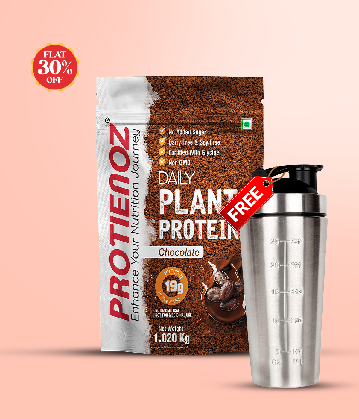 Plant Protein Powder With Sipper - Chocolate (1kg)
